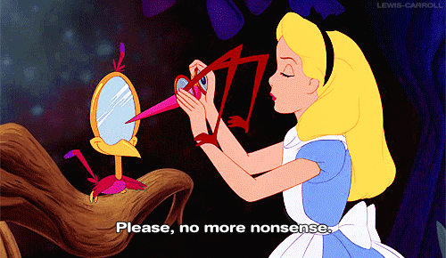 I’ve been really focused the past month trying to define “nonsense” and Wonderland. Are they the same thing? How do they relate to depression? Is Wonderland just Alice’s train of thought? I even started writing something that resembled an essay. As I was writing though, Alice can up to my computer, looked at the screen, screwed up her face and said,