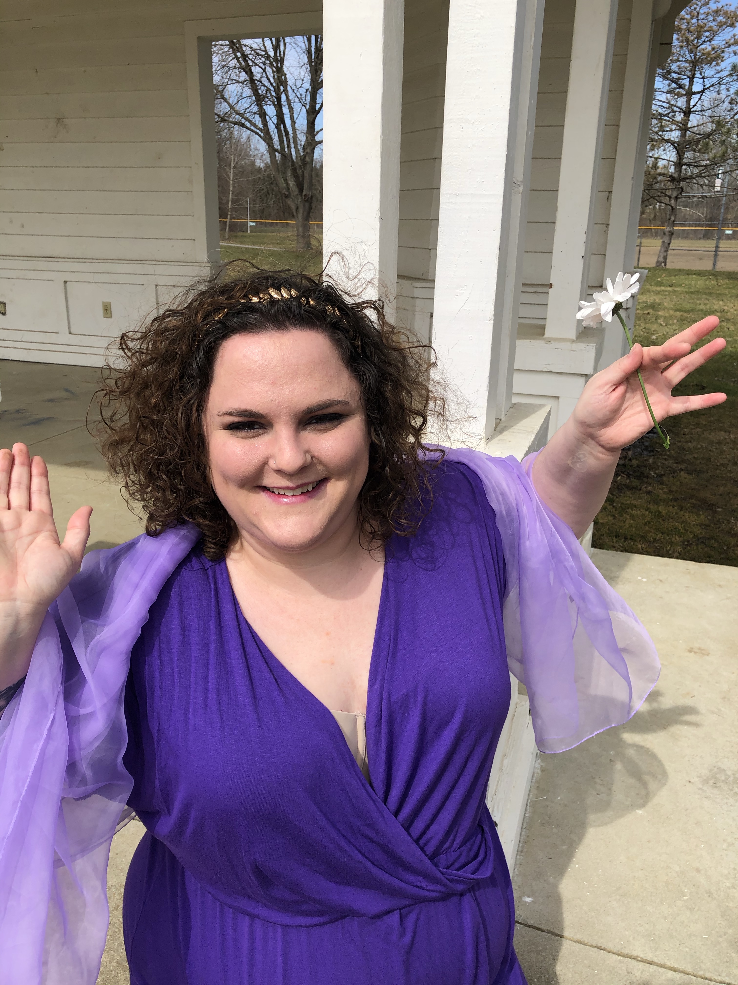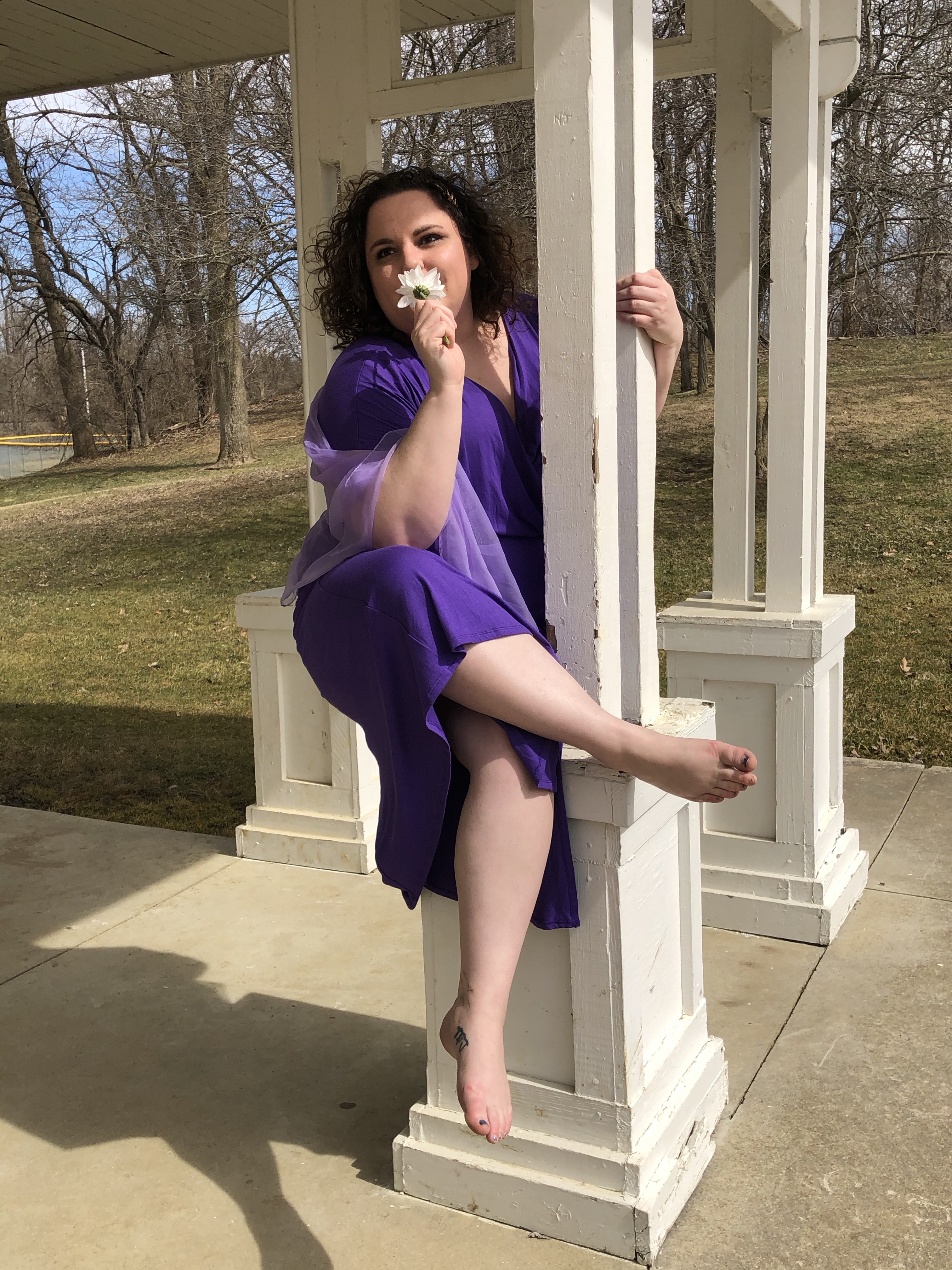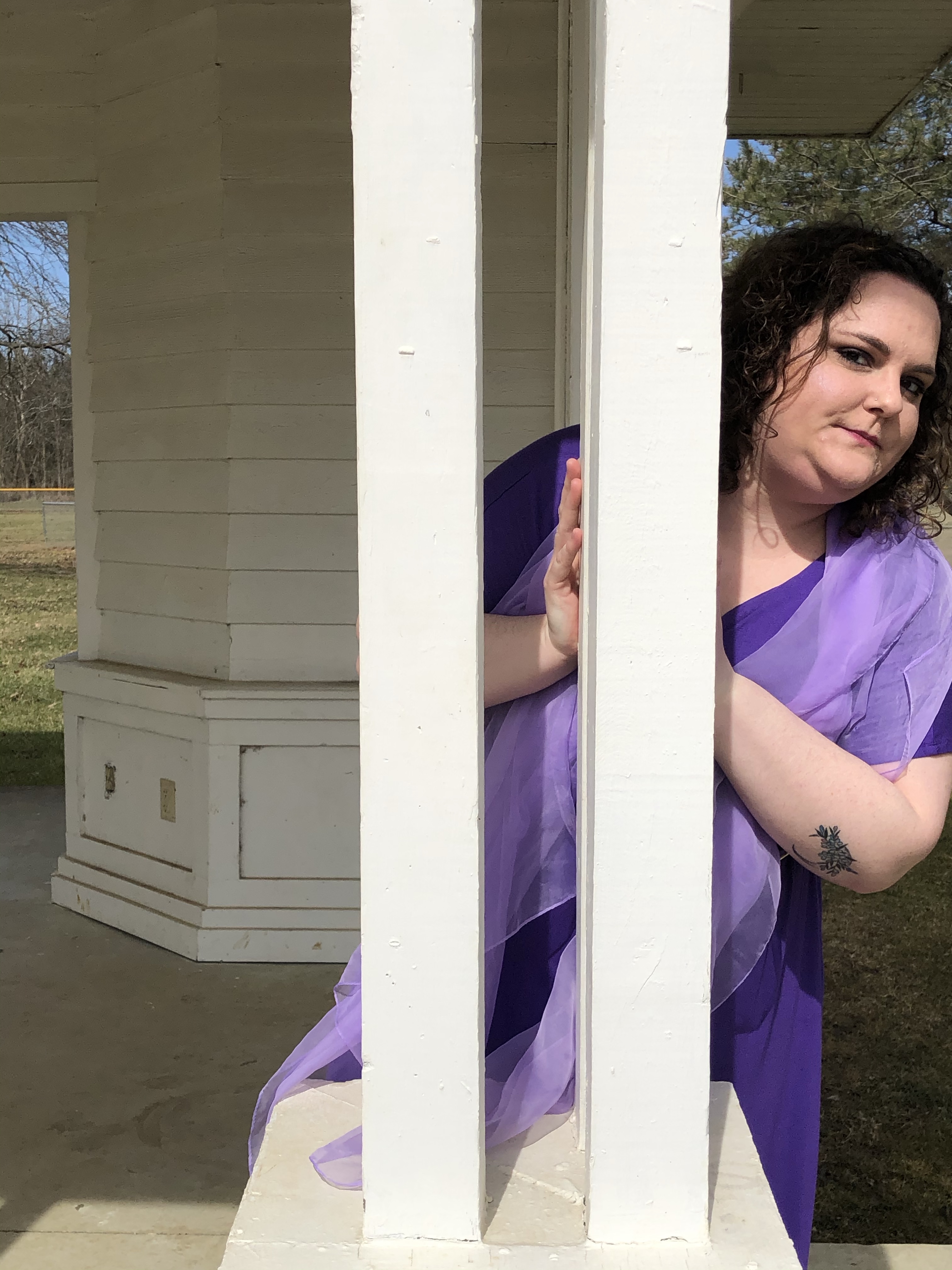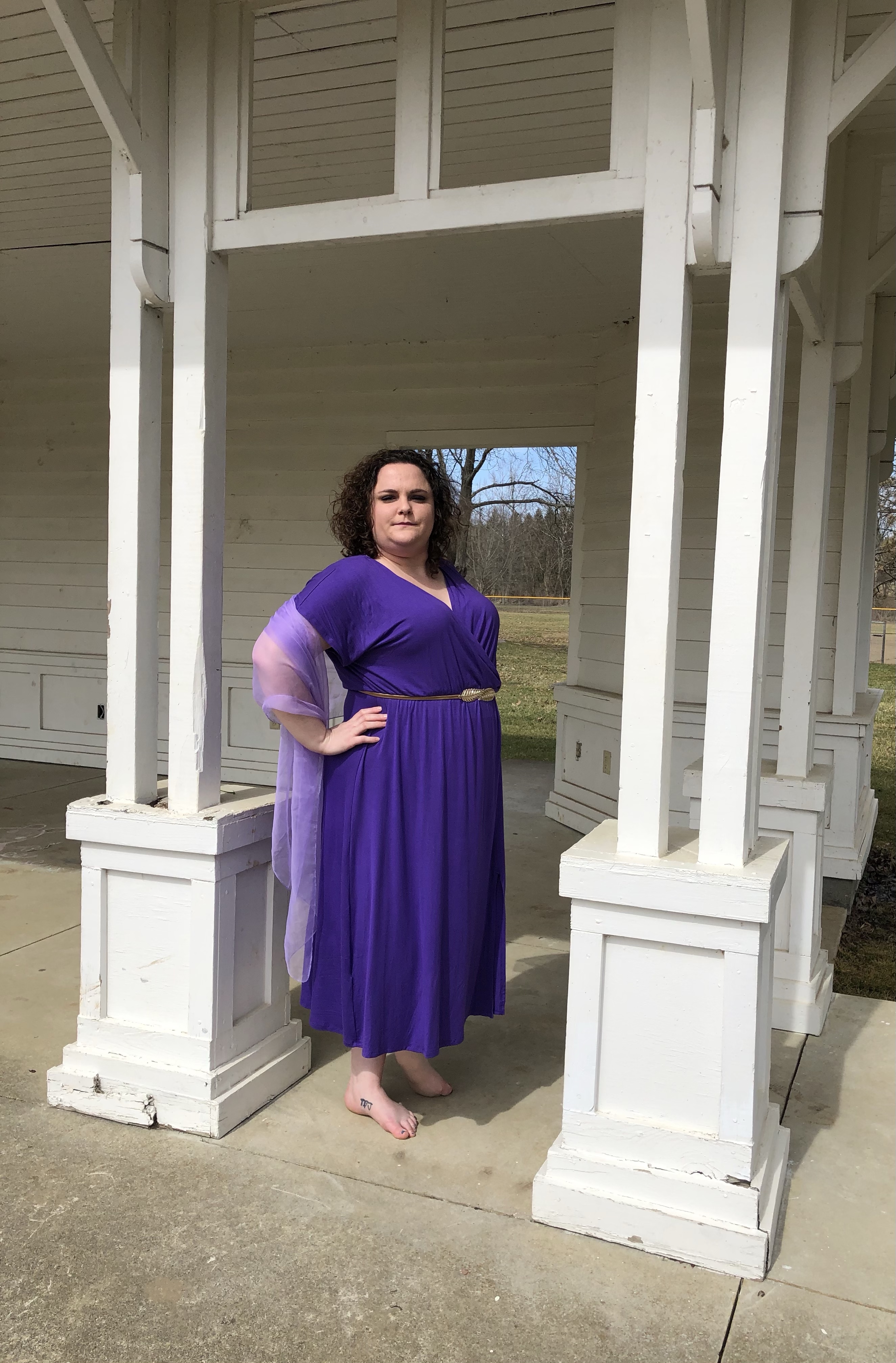 Greek architecture -the photoshoot friendly type- in the Columbus area was much more difficult to find than I originally thought it would be. I wanted to go to the Ohio Statehouse, but thanks the COVID and political unrest, the place is roped off for random people, like myself, who just want to take some photos. Luckily, my hometown has an amphitheater! What a perfect place for Meg to contemplate love – or the denying of it. Whichever. You can decide for yourself what mood Meg was in. (Side note: being sassy on camera is very hard for me.)