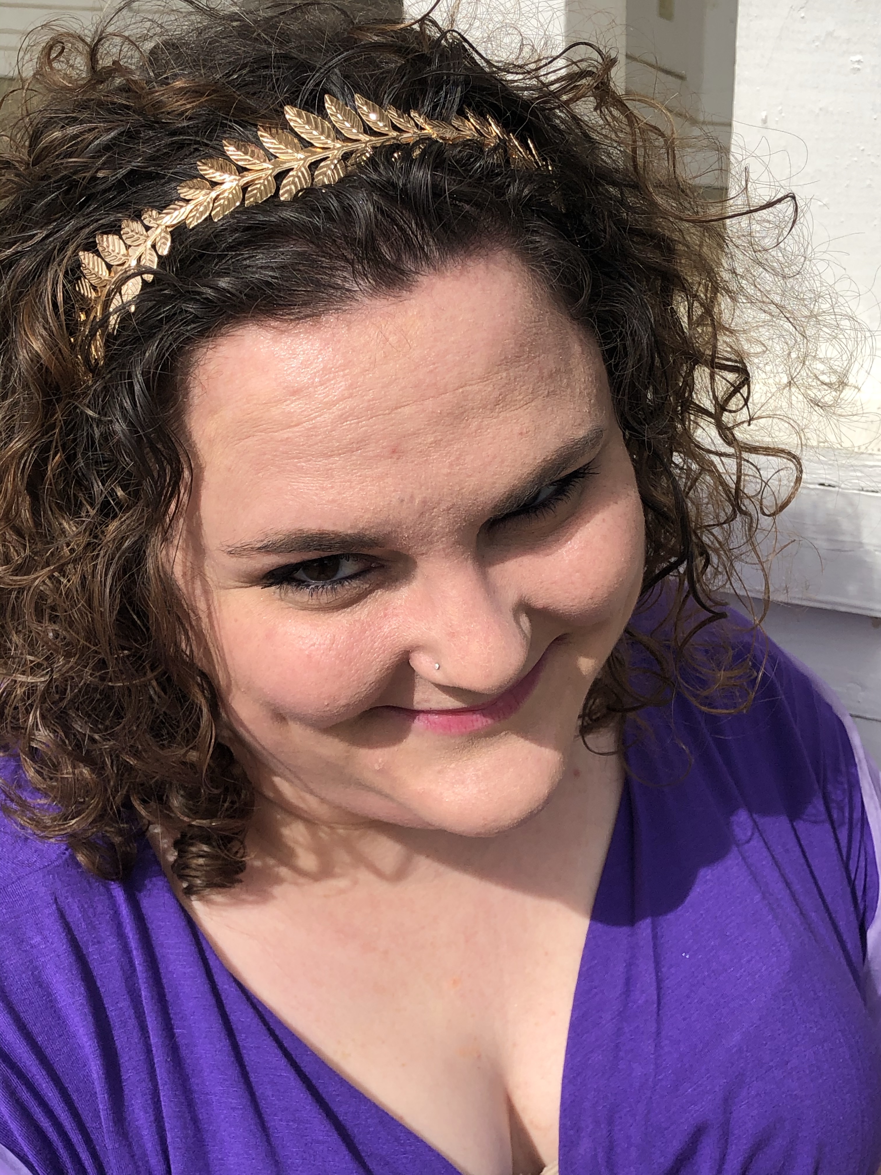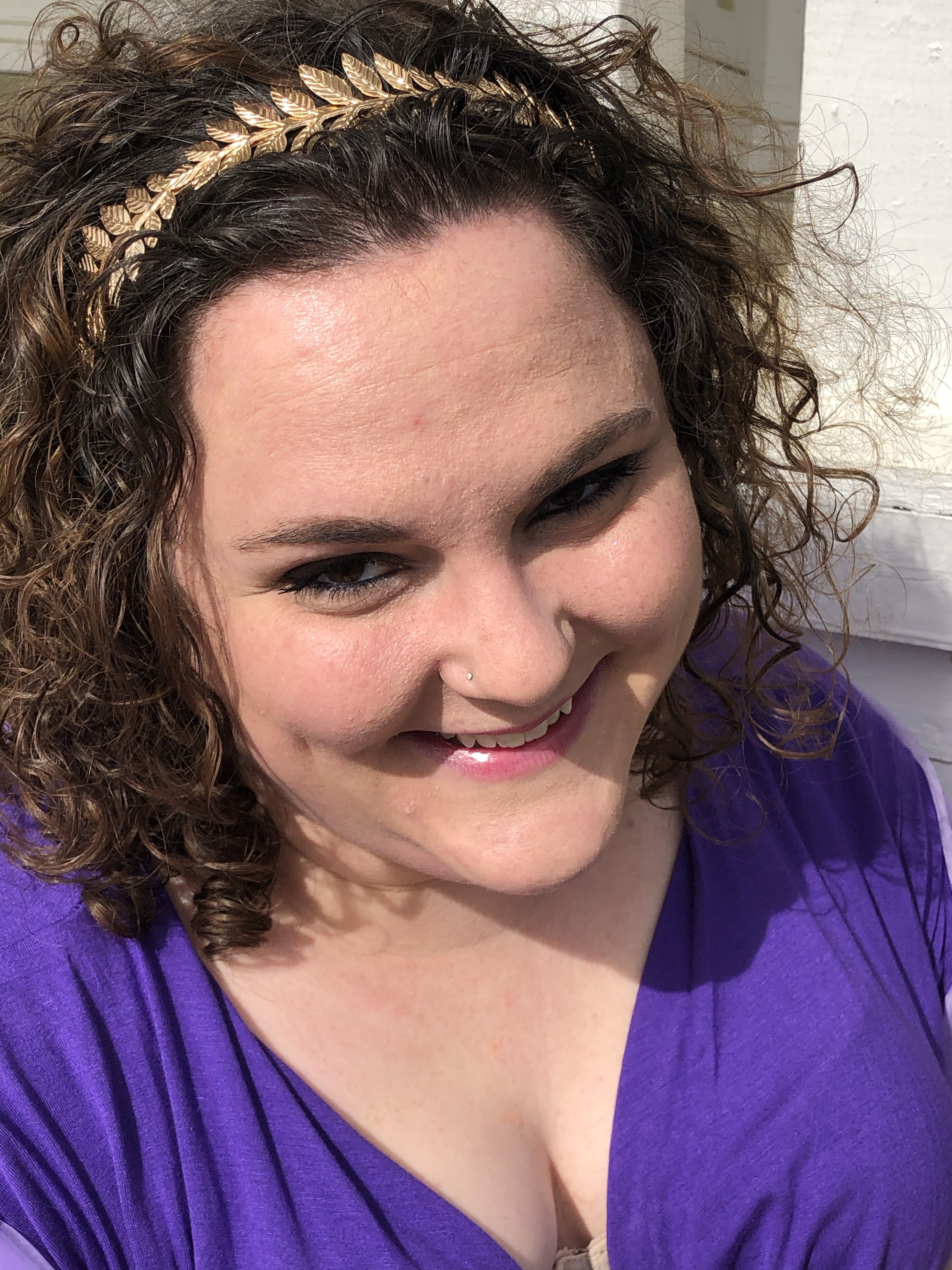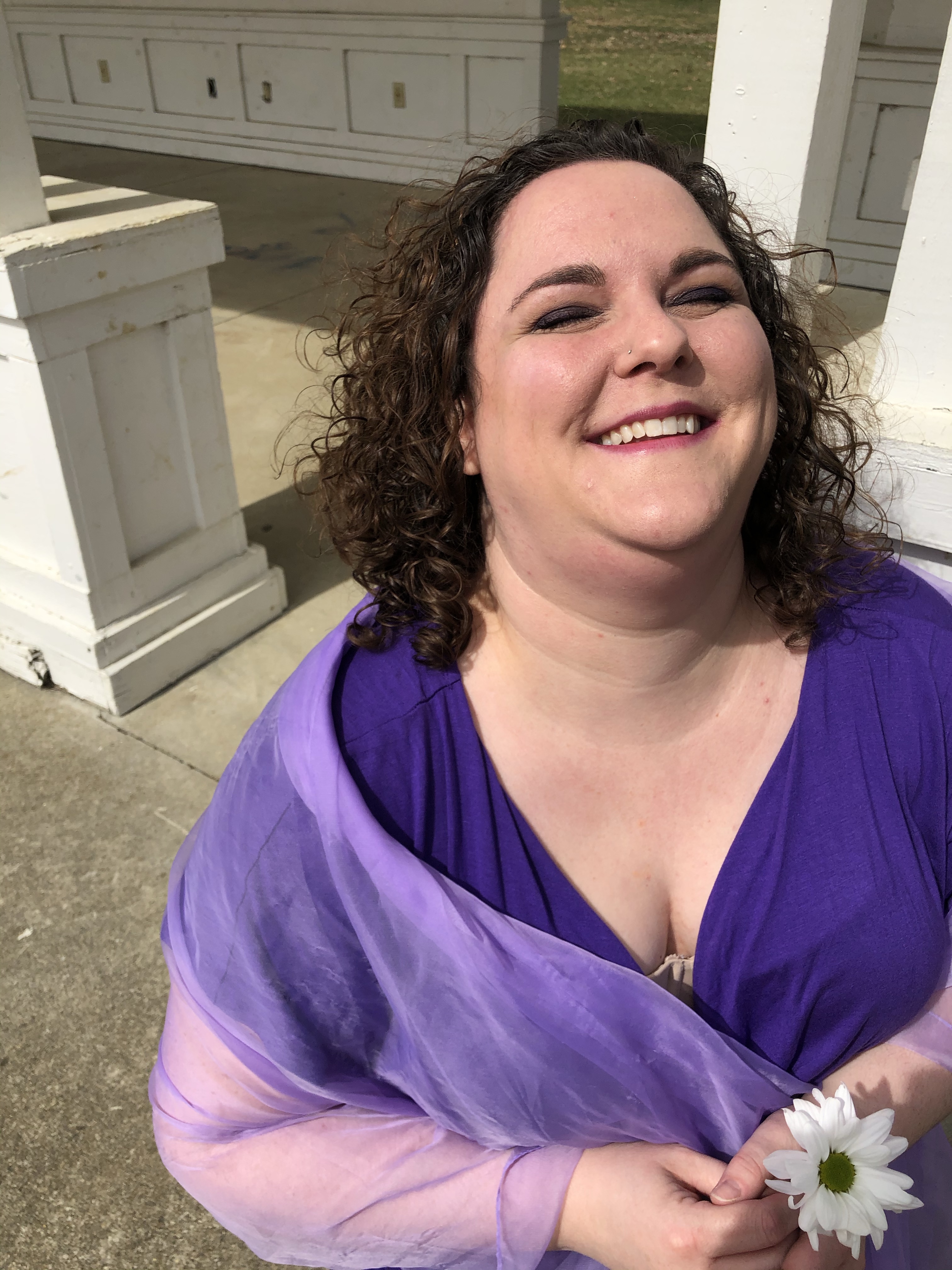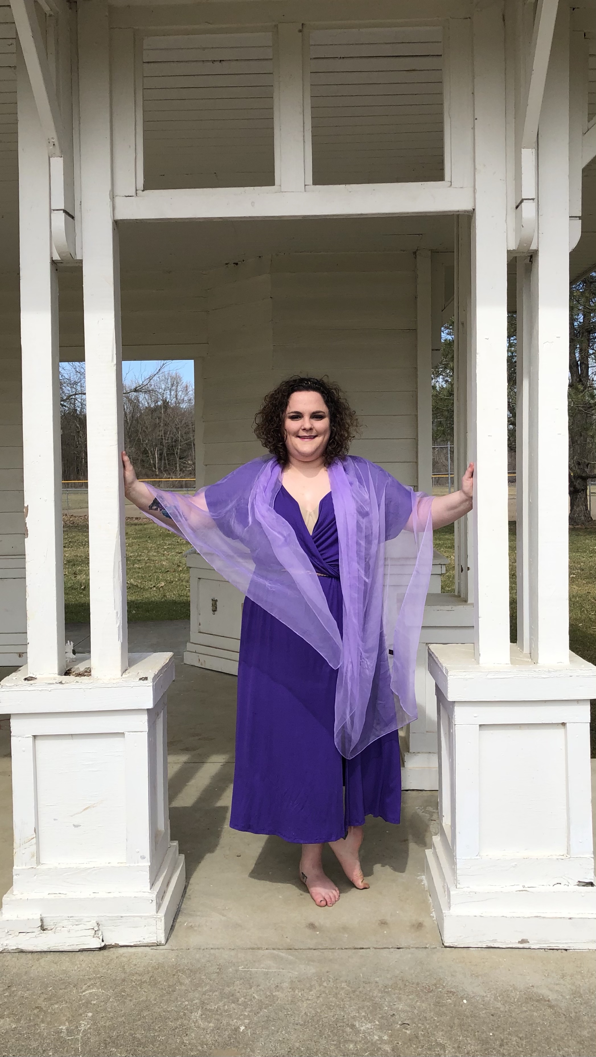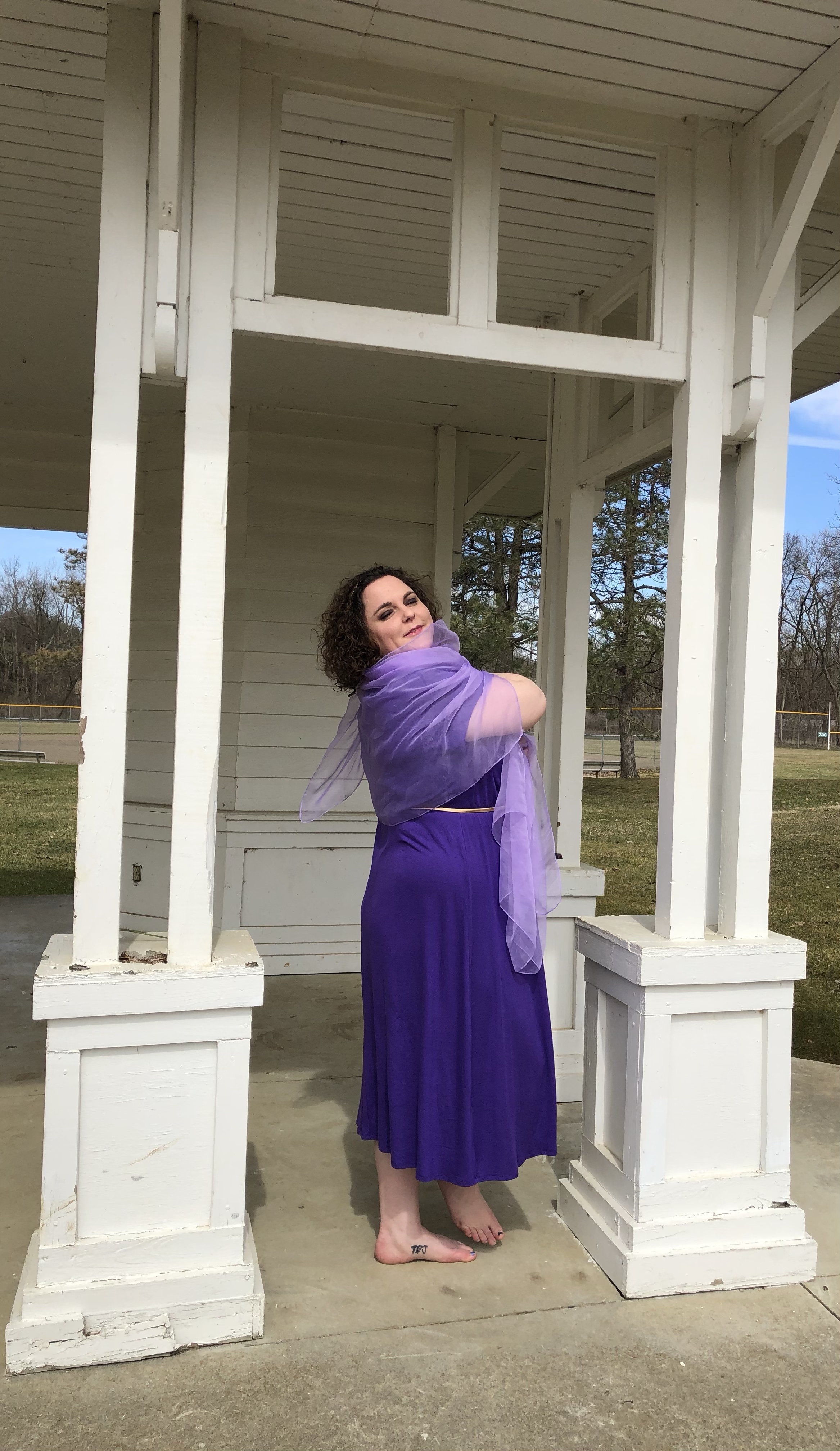 Greek architecture -the photoshoot friendly type- in the Columbus area was much more difficult to find than I originally thought it would be. I wanted to go to the Ohio Statehouse, but thanks the COVID and political unrest, the place is roped off for random people, like myself, who just want to take some photos. Luckily, my hometown has an amphitheater! What a perfect place for Meg to contemplate love – or the denying of it. Whichever. You can decide for yourself what mood Meg was in. (Side note: being sassy on camera is very hard for me.)